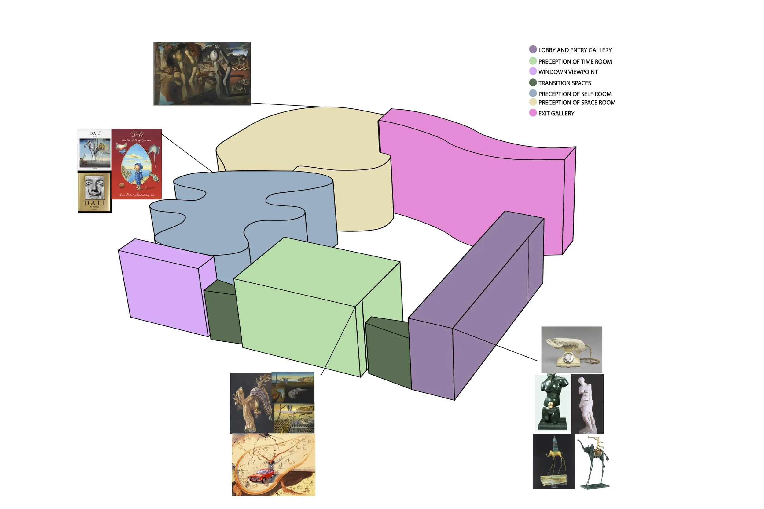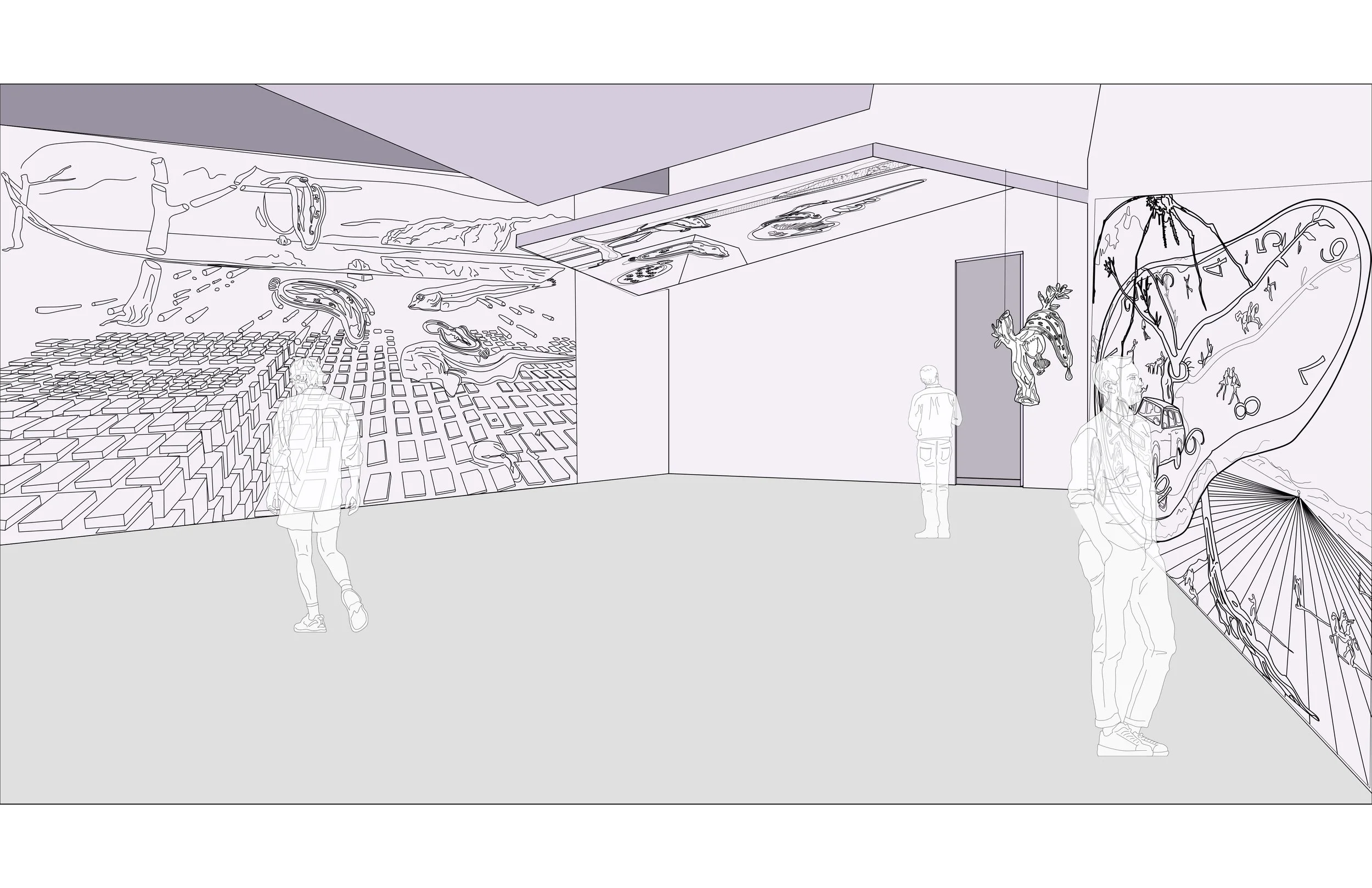Part of the core architecture studio, this assignment is centered around curation and exhibition design. This exhibition is a curated journey that lets the viewer experience the key concept of surrealism in art; an irrational juxtaposition. The viewer is guided through this experience by the way of narrow and long galleries that lead to large open exhibition spaces. These rooms are filled with pieces made by one of the most famous surreal artists; Salvador Dali. The exhibition is a sensory experiential way of viewing art that truly gives one the sense of irrational juxtaposition.